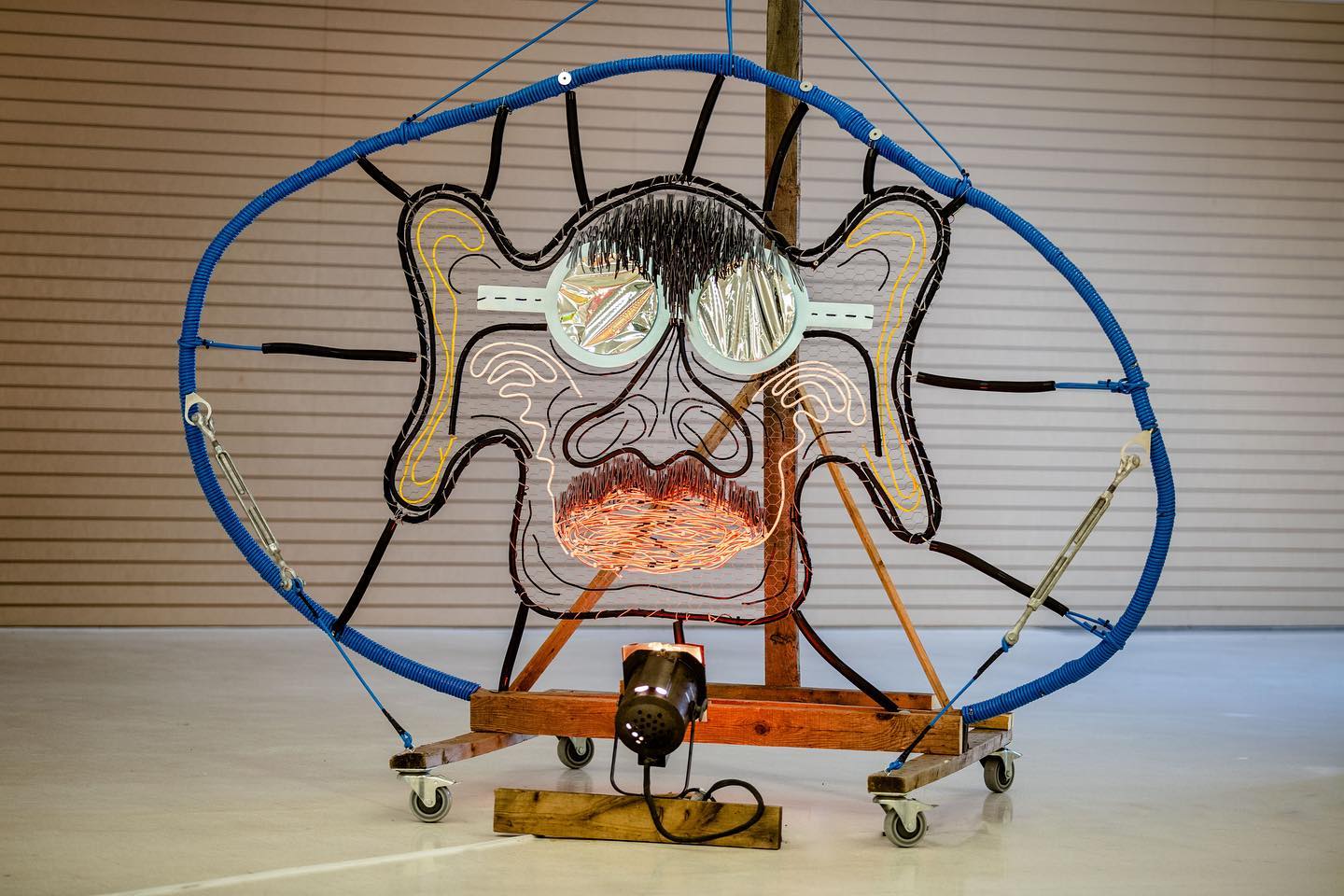 Filtres en gélatine colorée, bois, câbles, peinture, filtre métallique. Photo : Olivier Lamarre, 2022